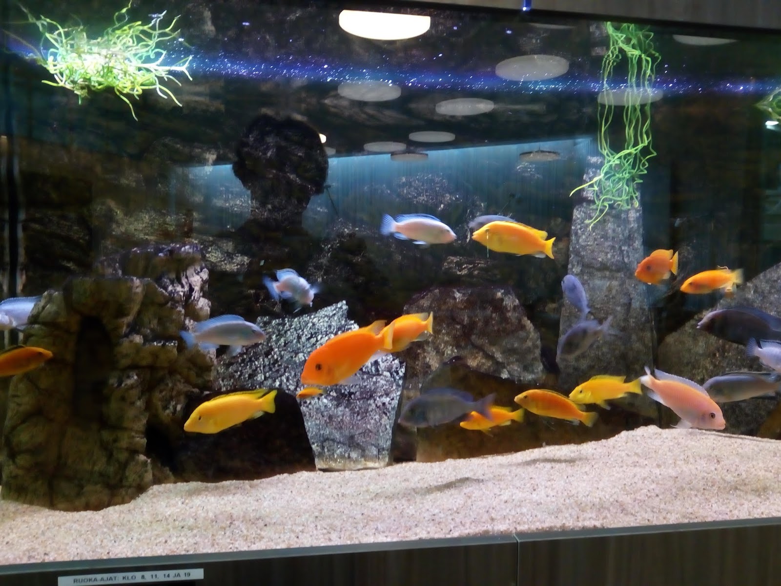 Akvaario toi elävyyttä remontoituun olohuoneeseen.